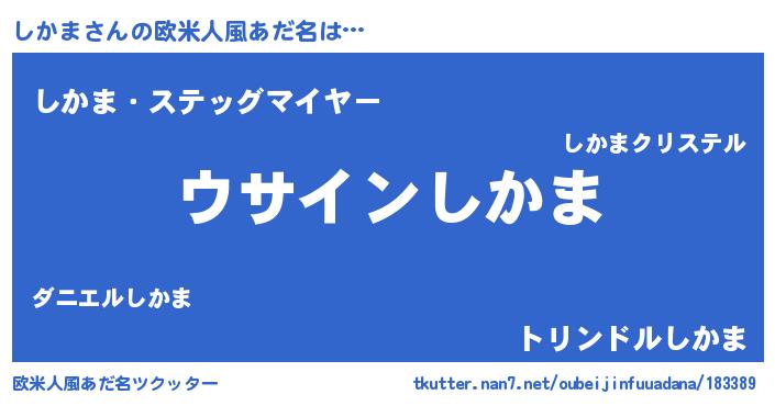 | 男性向けラノベタイトル風あだ名 | 『しかまの嫁は女の子じゃないと思った?』 |