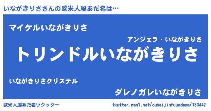 | 男性向けラノベタイトル風あだ名 | 『いながきりさ~年齢イコール彼女いない歴の魔法使い~』 |