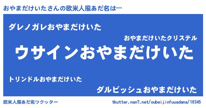 | 男性向けラノベタイトル風あだ名 | 『おやまだけいたの嫁は女の子じゃないと思った?』 |