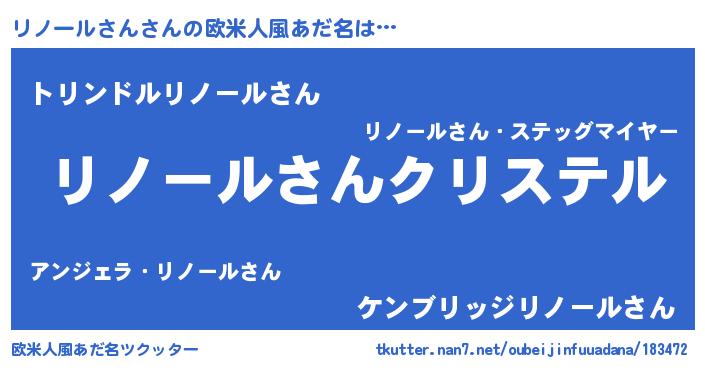 | 男性向けラノベタイトル風あだ名 | 『やはりリノールさんの青春ラブコメはまちがっている 』 |