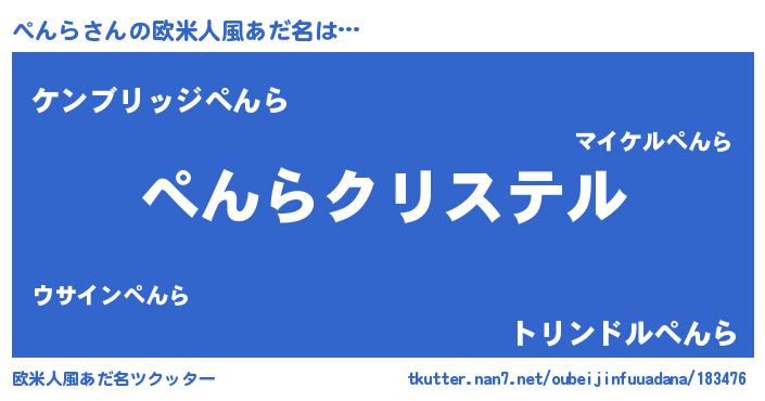 | 女子向けラノベタイトル風あだ名 | 『ぺんら伯爵の花嫁』『闇のぺんら』 |