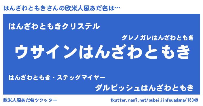 | 女子向けラノベタイトル風あだ名 | 『はんざわともきの卵を拾いまして』 |