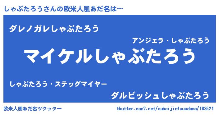 | 男性向けラノベタイトル風あだ名 | 『しゃぶたろうの憂鬱』 |
