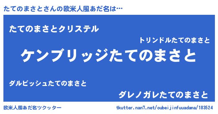 | 男性向けラノベタイトル風あだ名 | 『Re:たてのまさとから始める異世界生活』 |