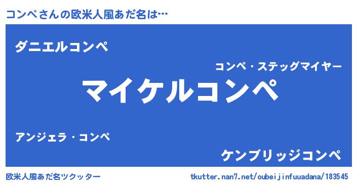 | 男性向けラノベタイトル風あだ名 | 『コンペの憂鬱』『はたらくコンペさま!』 |