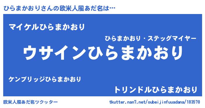 | 男性向けラノベタイトル風あだ名 | 『ひらまかおりの嫁は女の子じゃないと思った?』 |