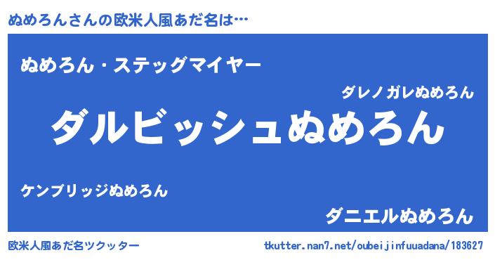 | 男性向けラノベタイトル風あだ名 | 『ぬめろんという概念が存在しない退屈な世界 』 |
