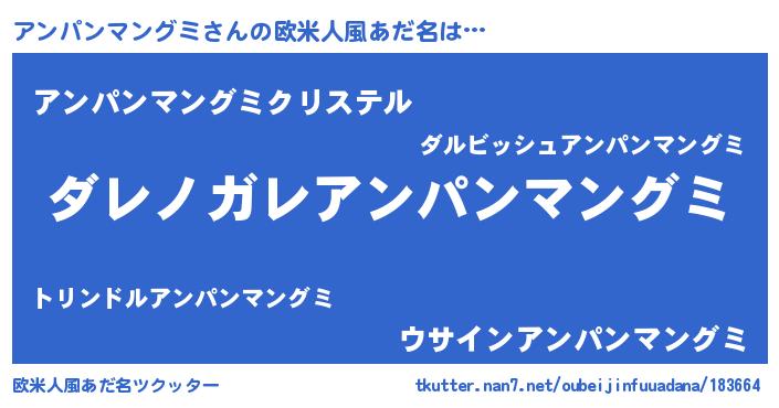 | 男性向けラノベタイトル風あだ名 | 『魔弾の王とアンパンマングミ』 |