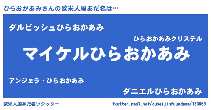 | 男性向けラノベタイトル風あだ名 | 『ひらおかあみの憂鬱』 |