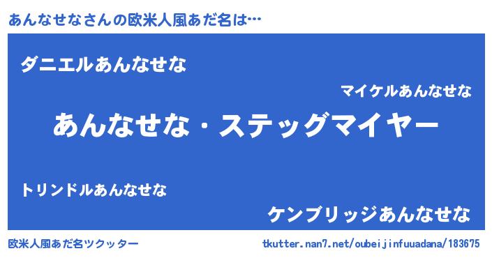 | 男性向けラノベタイトル風あだ名 | 『うちのあんなせなが世界を掌握している!』 |