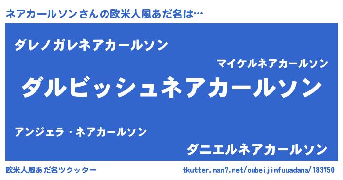 | 意味不明あだ名 | 『永久保存ネアカールソン』 |