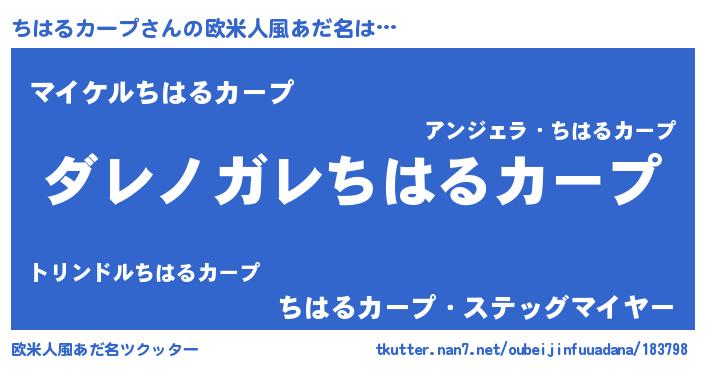| 男性向けラノベタイトル風あだ名 | 『この素晴らしい世界にちはるカープを!』 |