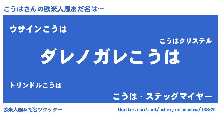 | 意味不明あだ名 | 『住所不定無職こうは(68歳)』 |