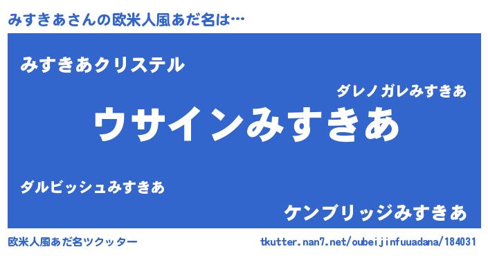 | 意味不明あだ名 | 『とにかく怪しいみすきあ』 |