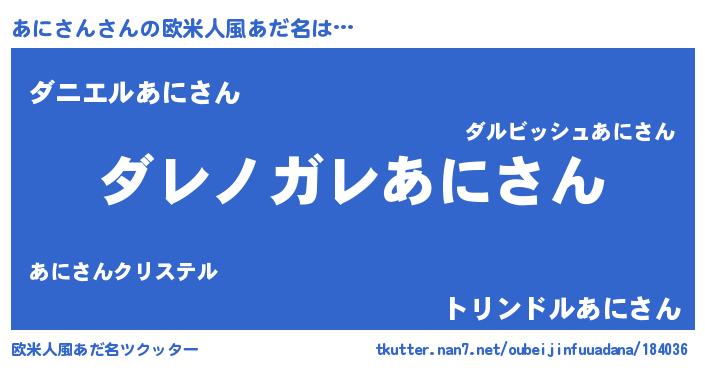 | 男性向けラノベタイトル風あだ名 | 『魔弾の王とあにさん』 |