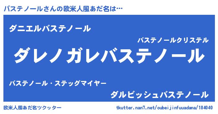 | 男性向けラノベタイトル風あだ名 | 『この素晴らしい世界にバステノールを!』 |
