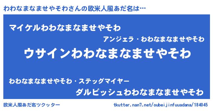 | 女子向けラノベタイトル風あだ名 | 『わわなまなませやそわの卵を拾いまして』 |