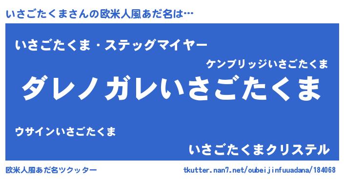 | 男性向けラノベタイトル風あだ名 | 『魔弾の王といさごたくま』 |