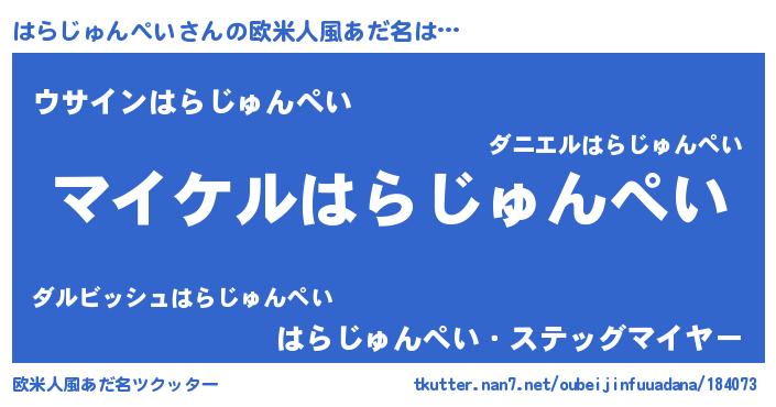 | 男性向けラノベタイトル風あだ名 | 『ハラジュンペイアートオンライン』 |