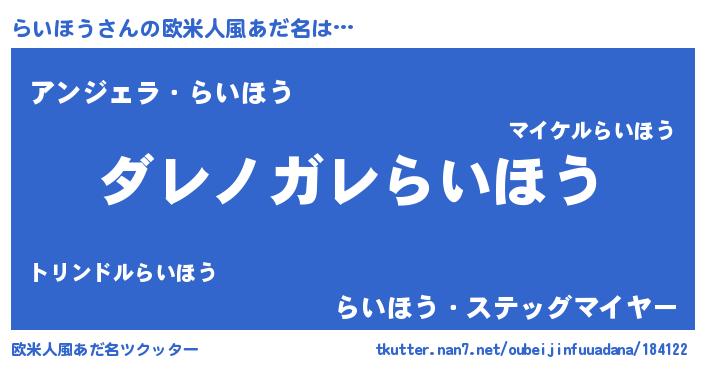 | ヘコむあだ名 | 『らいふぇ~』『らい太郎』 |