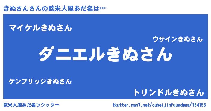 | ヘコむあだ名 | 『きぬにー』『きぬ太郎』『酢こんぶ』 |
