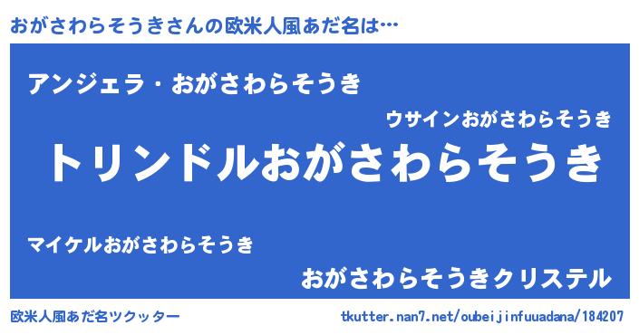 | 男性向けラノベタイトル風あだ名 | 『転生したらおがさわらそうきだった件』 |