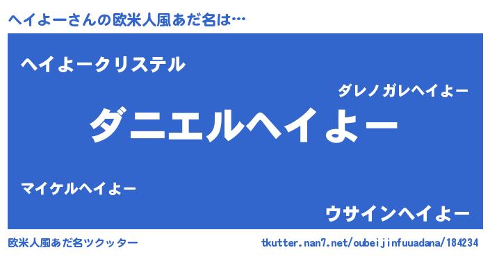 | 男性向けラノベタイトル風あだ名 | 『おまえをオタクにしてやるから、俺をヘイよーにしてくれ! 』 |