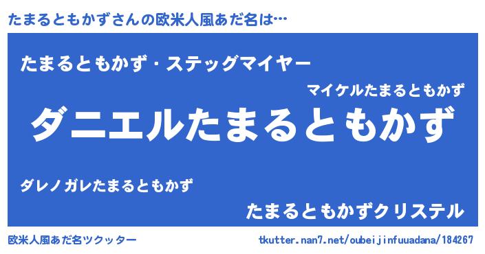 | 男性向けラノベタイトル風あだ名 | 『おまえをオタクにしてやるから、俺をたまるともかずにしてくれ! 』 |