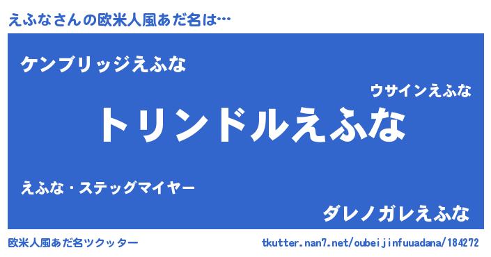 | 意味不明あだ名 | 『めかぶ科えふな属』『自称えふな』 |