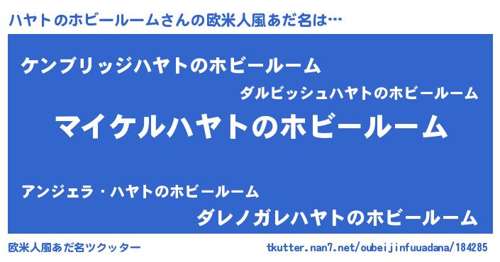 | 男性向けラノベタイトル風あだ名 | 『ハヤトノホビールームアートオンライン』 |