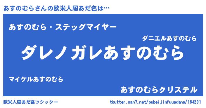 | 男性向けラノベタイトル風あだ名 | 『この素晴らしい世界にあすのむらを!』 |