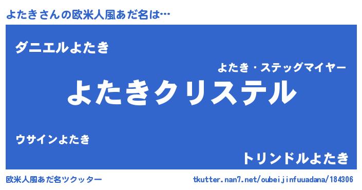 | 意味不明あだ名 | 『よたきフォーエバー』『ペロリンよたき』 |