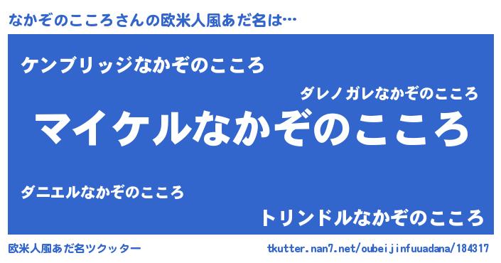 | 男性向けラノベタイトル風あだ名 | 『ナカゾノココロアートオンライン』 |