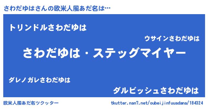 | 男性向けラノベタイトル風あだ名 | 『冴えないさわだゆはの育てかた』 |