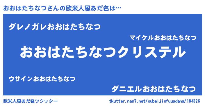 | 意味不明あだ名 | 『おおはたちなつフォーエバー』 |