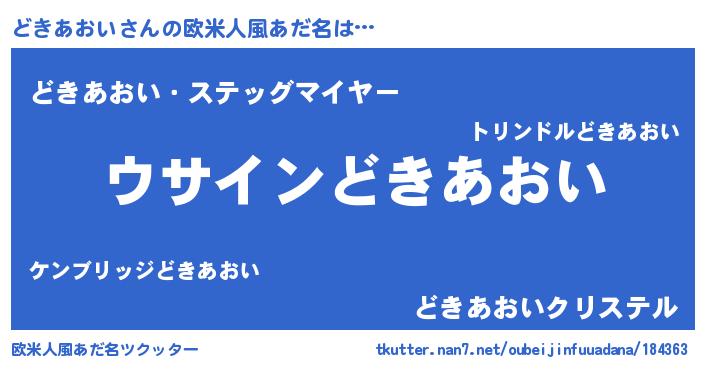 | 女子向けラノベタイトル風あだ名 | 『どきあおいの卵を拾いまして』 |