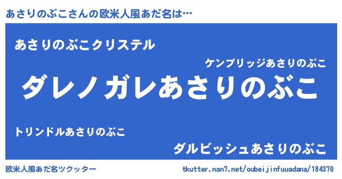 | 男性向けラノベタイトル風あだ名 | 『この素晴らしい世界にあさりのぶこを!』 |