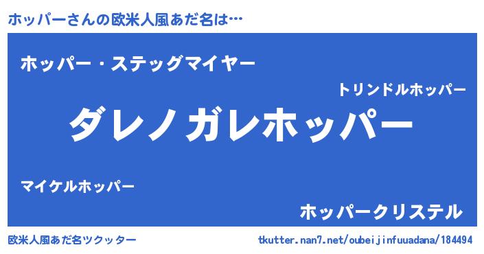 | 意味不明あだ名 | 『住所不定無職ホッパー(95歳)』 |