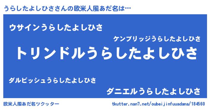 | 男性向けラノベタイトル風あだ名 | 『転生したらうらしたよしひさだった件』 |