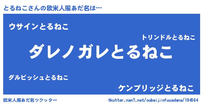 | 男性向けラノベタイトル風あだ名 | 『この素晴らしい世界にとるねこを!』 |