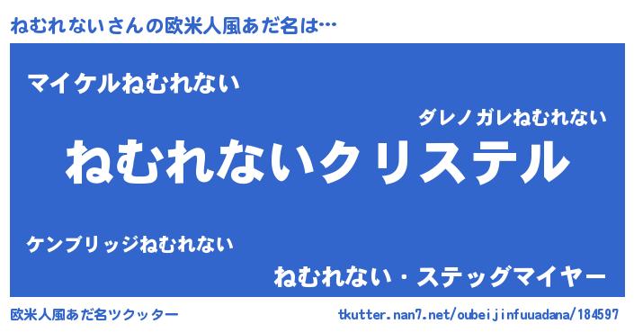 | 女子向けラノベタイトル風あだ名 | 『ねむれないの雑貨屋さん』 |
