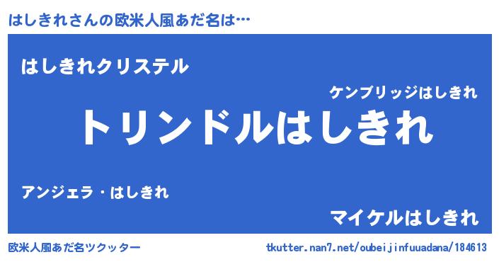 | 男性向けラノベタイトル風あだ名 | 『転生したらはしきれだった件』 |