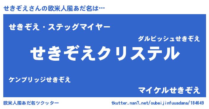 | 女子向けラノベタイトル風あだ名 | 『せきぞえ伯爵の花嫁』『闇のせきぞえ』 |