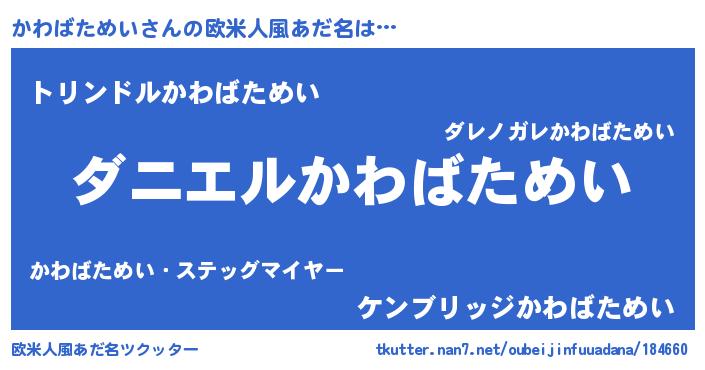 | ヘコむあだ名 | 『かわっ子』『かわばためい(遠い目)』 |