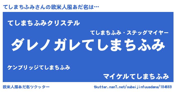 | 恥ずかしいあだ名 | 『てしっちょ』『プリティーてしまちふみ』 |