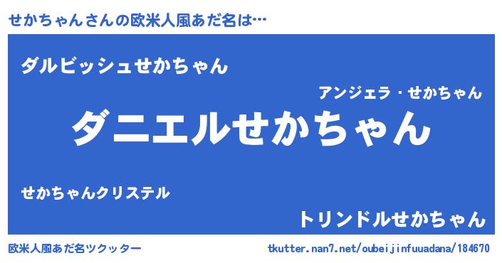 | ヒーロー風カッコイイあだ名 | 『天空の使者せかちゃん』『仮面セカダー』 |
