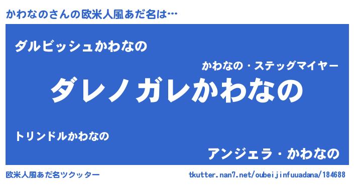| ヒーロー風カッコイイあだ名 | 『仮面カワダー』『ネオカワナノ』 |