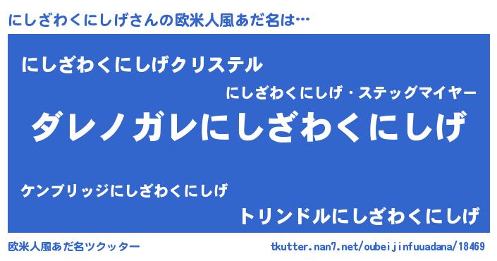 | 男性向けラノベタイトル風あだ名 | 『魔弾の王とにしざわくにしげ』 |