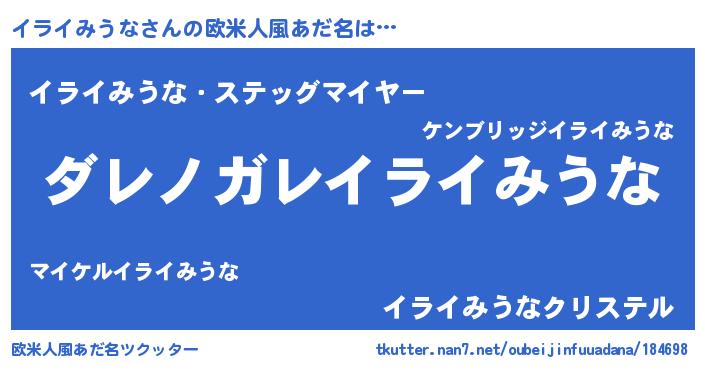 | 意味不明あだ名 | 『住所不定無職イライみうな(77歳)』 |