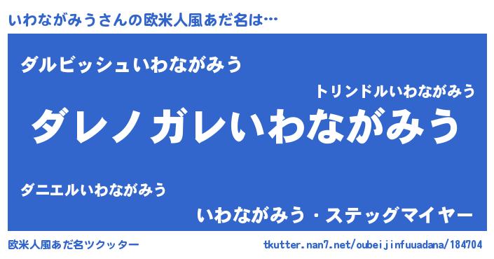 | ヘコむあだ名 | 『いわながみう(苦笑)』『いわっ子』 |